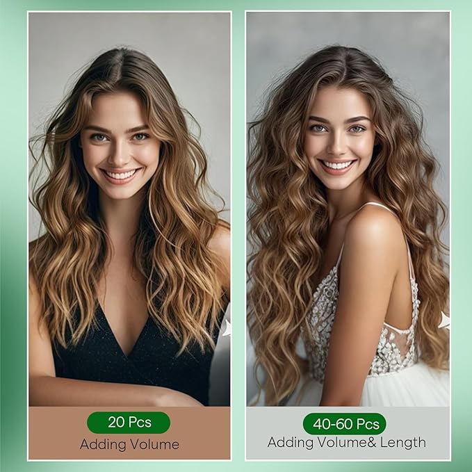 - High concealment:The Prodoucts are made of 100% real human hair, soft, shiny and seamless; It can be restyled like your own hair. 2-3 packs increase thickness, 3-4 packs increase length.