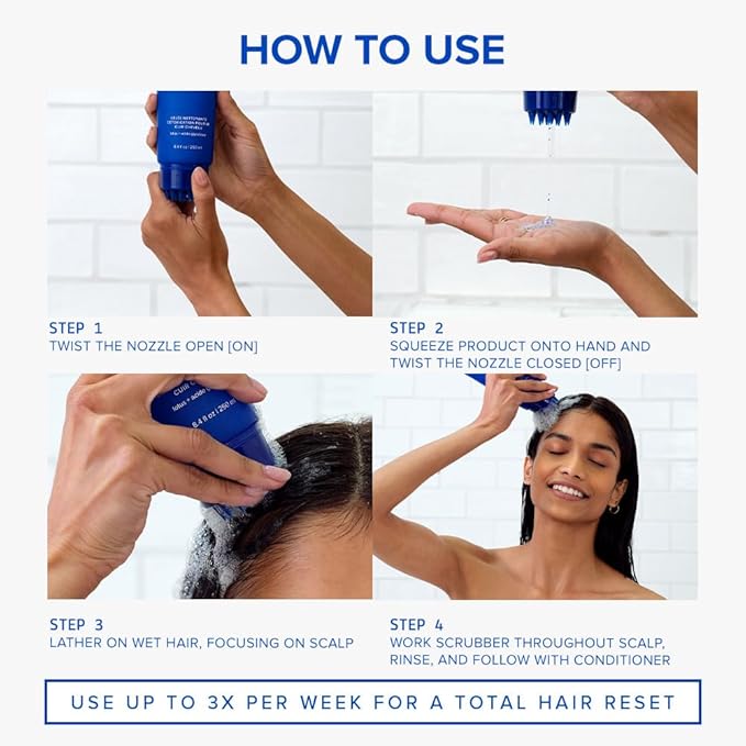 - USE UP TO 3X PER WEEK FOR A TOTAL SCALP DETOX - Twist the nozzle to open, squeeze a quarter-sized amount in the palm of your hand, and twist the nozzle to close. Lather on wet hair, using the attached scalp scrubber for deeper exfoliaton. Rinse thoroughly. For best results, follow with the Intensive Repair Conditioning Hair Mask.
