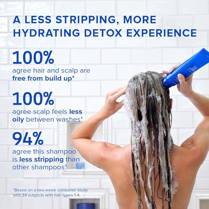- A BETTER DETOX SHAMPOO - This sulfate-free, non-stripping clarifying shampoo detoxifies the scalp by eliminating build up, dirt, and oil. With a built-in scalp scrubber for deeper cleansing, this product restores balance to the scalp while clearing clogged hair follicles to promote healthy hair growth. Safe for color-treated hair.