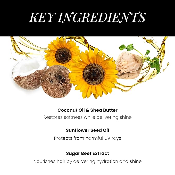 - Nourishing Formula: Infused with Coconut Oil, Shea Butter, and Avocado Oil to hydrate and strengthen hair