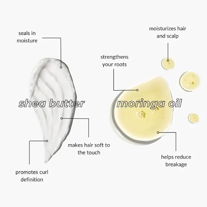 - Infused With Shea Butter and Moringa Oil: Our products are full of hair-nourishing nutrients that repair, strengthen, moisturize and reduce breakage, leaving curls soft, defined, and full of shine.