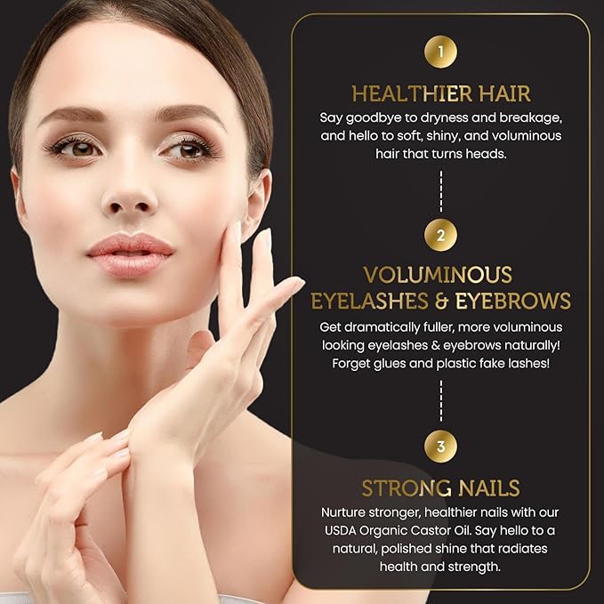 - Our MADE IN THE USA Castor oil is popular with Instagram models and superstar’s worldwide, this 100% pure, USDA Certified Organic Castor Oil is the Premium option for thicker hair and dramatically fuller looking eyelashes & eyebrows naturally! Our Organic Castor oil is packaged in a large 16.9 oz beautiful designer glass bottle and the natural secret to models, superstars and individuals worldwide for a more voluminous and youthful look.