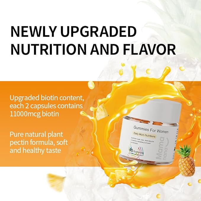 Mamanana Sugar-Free Hair Skin Nails Gummies for Women – 27 Superfoods, Biotin & Collagen, Clinically Tested to Reduce Hair Loss & Boost Volume, Vegan Multivitamin with Probiotics, 60 Count