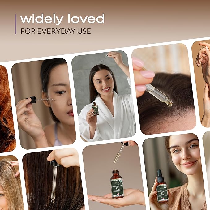 - Promotes Hair Growth: Rosemary oil is rich in nutrients that stimulate hair follicles and support healthy hair growth. Use this 100% pure rosemary oil as a scalp treatment to help rejuvenate hair, adding thickness and shine with regular use.