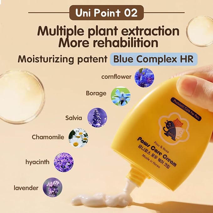 UNIPAWS Probiotic Moisturizing Cream for Dogs & Cats – Organic & Lick-Safe Relief for Dry, Cracked, Itchy Paws, Noses, Elbows & Ears – Skin-Care, Non-Greasy Formula, Made in Korea, 2.1 oz / 60g