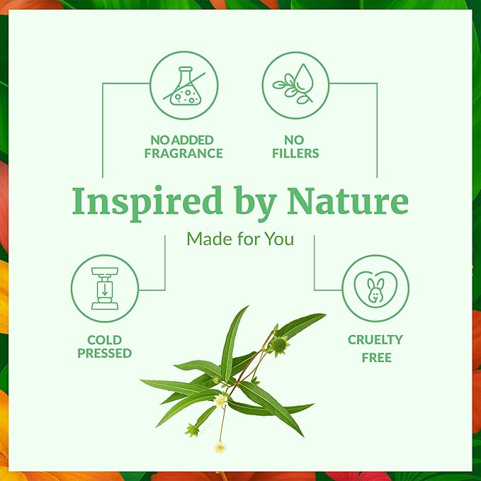 - Skin Nourishment: Organic Bhringraj Oil is suitable for massage and can be used as a moisturizer. It can be used alone or mixed with other carrier oils for a massage. Use it in your skincare routine by applying a few drops to a cleansed face. You may also add a few drops to your creams, lotions, or bath products to enjoy the benefits of Organic Bhringraj Oil for your skin. It is a non-greasy and non-sticky oil suitable for all skin types.