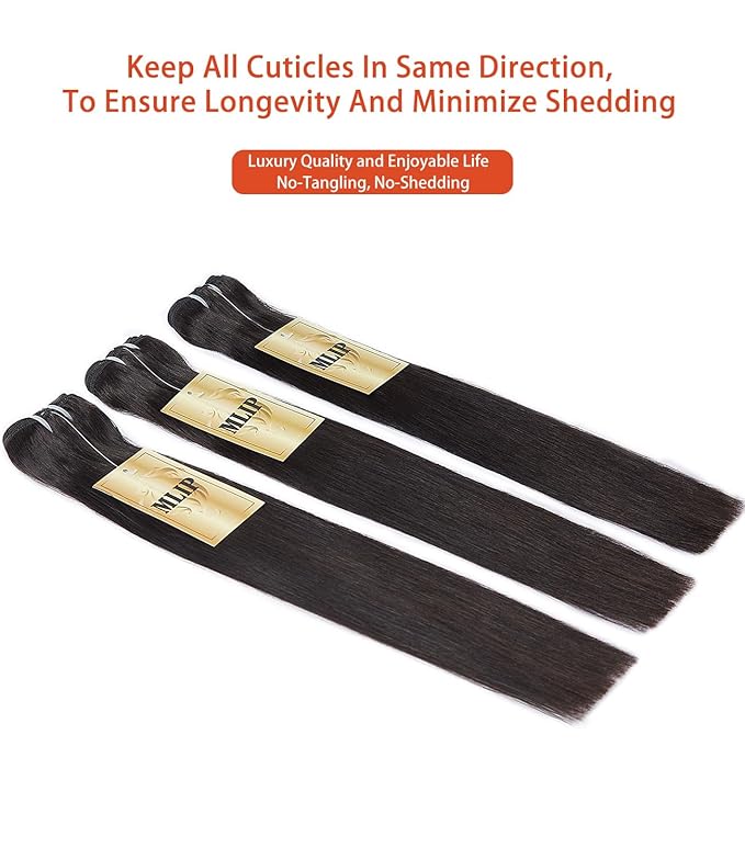 mlip Raw Bundles Human Hair Straight, No Tangle Shedding, Keep Texture Silky Soft After Multiple Washes, 15A Raw Indian Hair Bundles 18 18 18 Inches, Triple Lifespan 3X