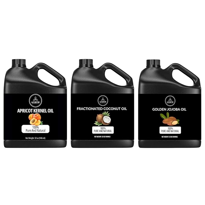 Naturevibe Botanicals Apricot Oil 32oz Fractionated and Jojoba Oil 32oz Coconut Oil 32oz | Oil Combo