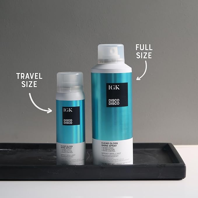 IGK Disco Disco Clear Gloss Hair Shine Spray | Full + Travel Size | Lightweight, High-Shine Finishing Hair Spray | 5.3 + 2.1 oz (Pack of 2)