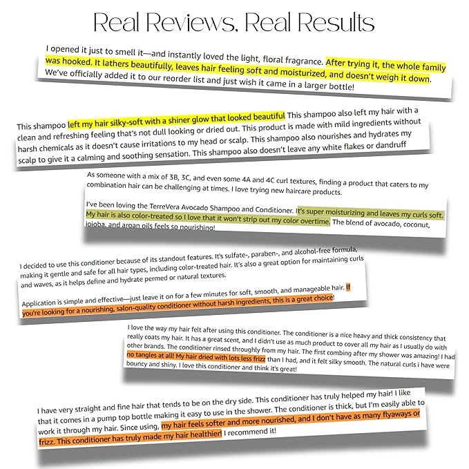 TerreVera Avocado Shampoo - Salon Quality Hydrating Formula - Sulfate & Paraben Free - Ideal for Strengthening, Dry or Color-Treated Hair – Natural Avocado, Argan, Coconut & Jojoba Oils – 16.9 fl oz