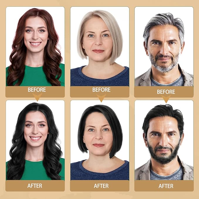 - [3-in-1 COLOR SOLUTION] This hair dye shampoo 3 in 1 simplifes your hair dyeing routine, shampoo hair dye combines black hair dye, hair shampoo and contioner in one bottle. Achieves hair color transformation with natural looking, shiny, healthier, evenly colored, and Non-Stick to the scalp.