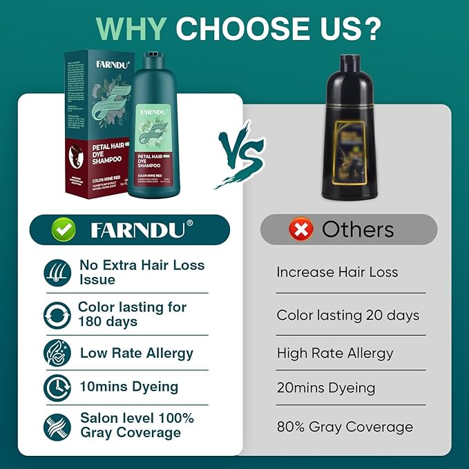 - 100% GRAY COVERAGE: Our hair dye shampoo for gray hair can get your unwanted gray hair fully covered, no missed spots, dyeing hair well with a decent shine. Hair coloring effect lasts 180 days.