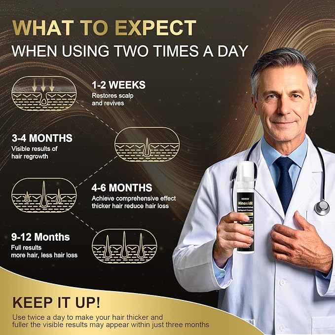 - 【Visible Results in 8–12 Weeks】: Minoxidil foam stimulates hair regrowth, while Biotin Hair Tonic delivers essential nutrients for thicker, fuller hair. Suitable for both men and women, it boosts hair density by over 35% after three months of use.
