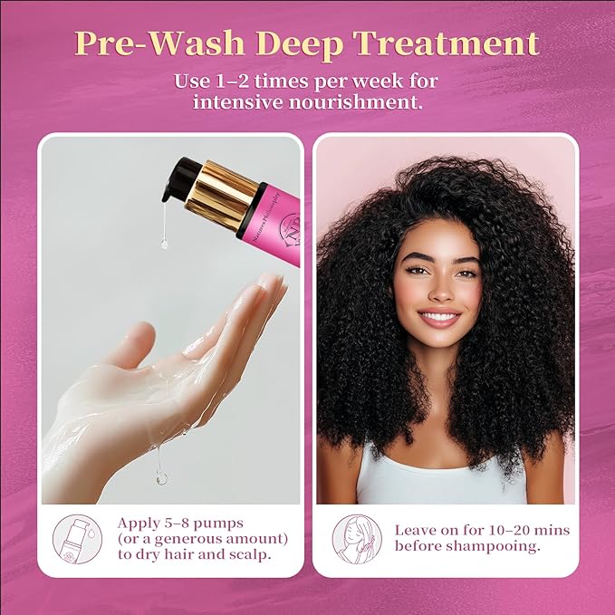 - Lightweight & Non-Greasy Formula: Our hair care oil enriched with Cyclopentasiloxane and Dimethiconol for fast absorption, leaving hair smooth, frizz-free, and residue-free. Suitable for all hair types, including Curly, Wavy, Straight, color - treated hair