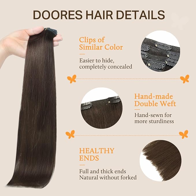 - Durable and Not Easy to Fall off: Stainless steel clips with soft rubber blend invisibly with your hair color, ensuring comfort and scalp protection. Includes 2 extra clips. Handcrafted wefts are tightly stitched for durability, no tangle secure fit