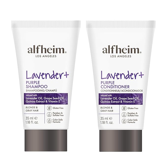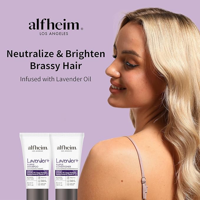 ALFHEIM Lavender+ Purple Shampoo & Conditioner Travel Set | Tone-Correcting for Blonde, Silver & Gray Hair | Neutralizes Brass & Yellow Tones | Moisturizes, Protects Color & Adds Shine | 1.18oz*2