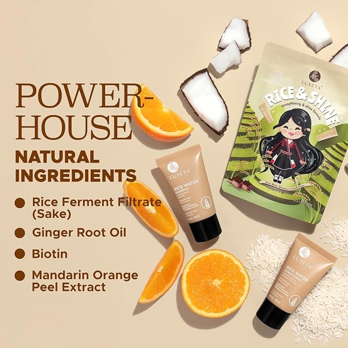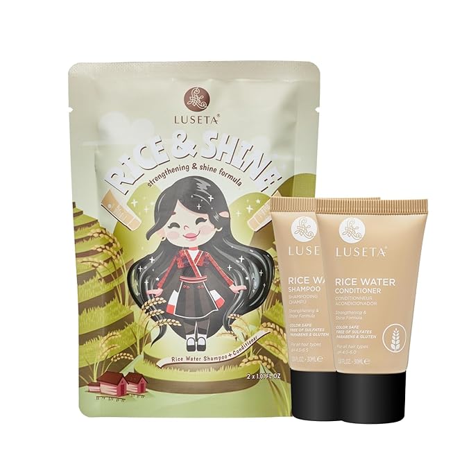 Luseta Rice Water Shampoo and conditioner Set Strengthening & Nourishing Revitalizes Shine for All Hair Types Hydrating & Frizz Control for Women and Men 1.01oz*2