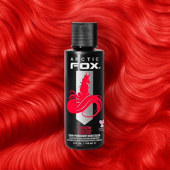 Arctic Fox Semi-Permanent Hair Dye, Vegan & Cruelty-Free, Vibrant Red Color, Ammonia-Free, Peroxide-Free, Conditioning Formula, For All Hair Types, Poison, 4 fl oz (Pack of 2)