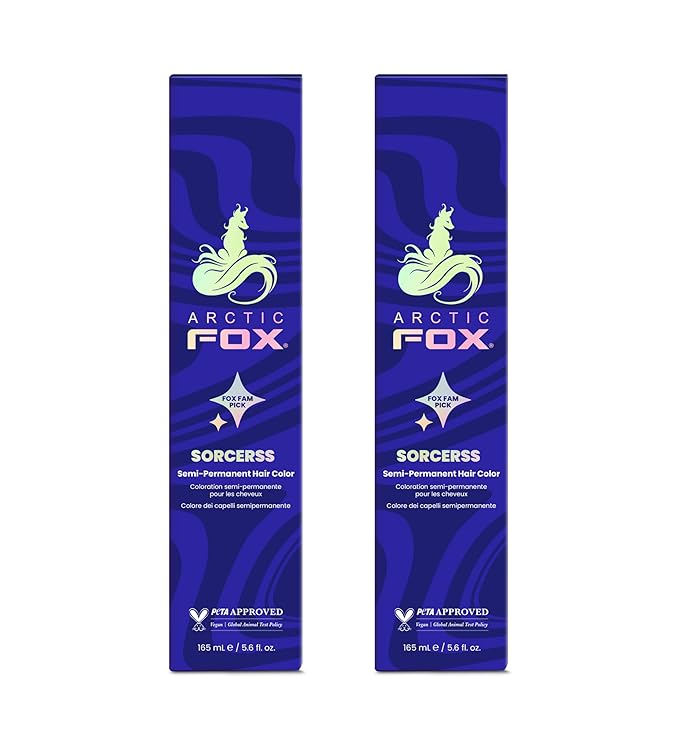 Arctic Fox Semi-Permanent Hair Color Dye, Vegan & Cruelty-Free, Ammonia-Free, Peroxide-Free, Conditioning, Midnight Blue, Sorceress, For All Hair Types, 5.6 Fl Oz (Pack of 2)