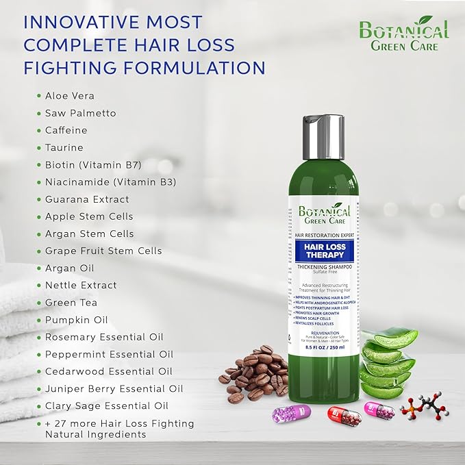 Hair Loss Therapy Strengthening Shampoo for Thinning Hair, Sulfate‑Free, Strengthening & Volumizing, DHT Blocker, Color Safe Made in USA