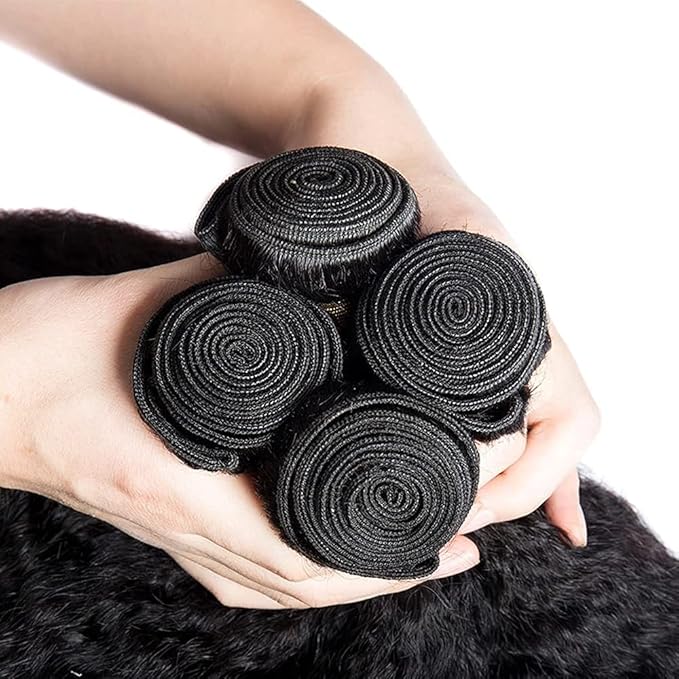 - 【Human Hair Bundles Feature】:#1B Natural Black Yaki Straight 3 Bundles Of Human Hair Bundles Per Pack, Optional From 12-34 Inches,With 50 Gram Per Bundle.The Kinky Straight Texture Is Nice And Soft To The Touch,Natural ,Blends Well With Your Own Hair.