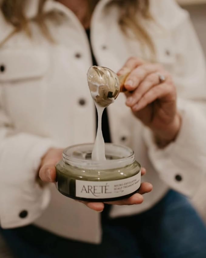 ARETÉ Micro-Exfoliating Scalp Scrub Treatment Masque + Scalp Cleanser, Deep Conditioning Hair Mask for Damaged Hair and Growth, Bamboo Extract + White Willow Bark, Snow Mushroom, Made in USA, 5.3oz