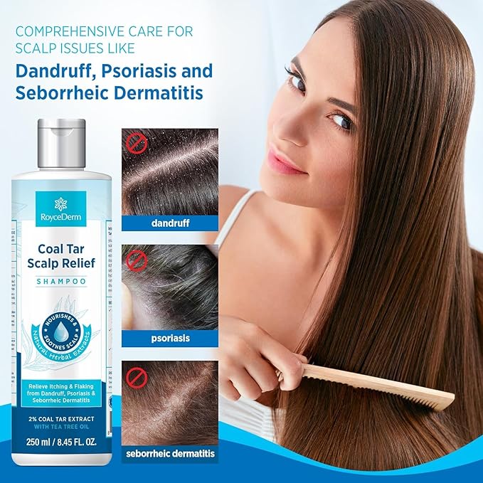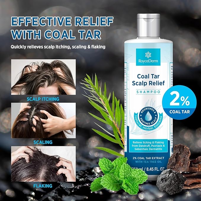 - Rapid Scalp Relief: Say goodbye to itching, redness, and irritation from dandruff with our medicated formula. Crafted with 2% coal tar extract, tea tree oil, and soothing herbal extracts, it swiftly calms scalp discomfort for instant relief.
