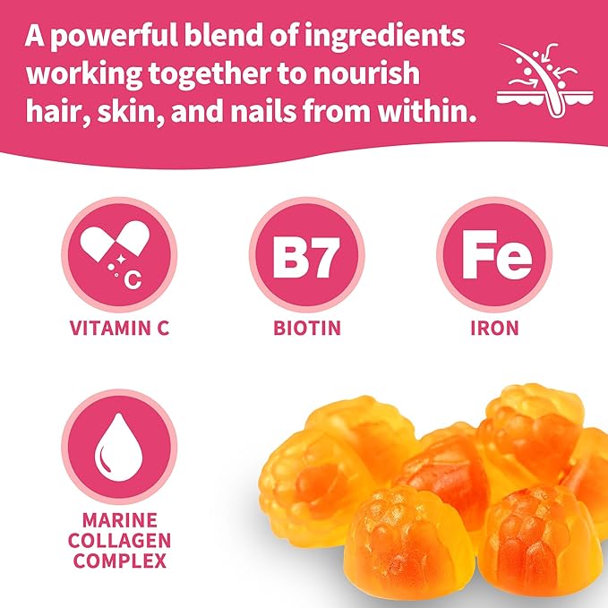- Collagen & Biotin Complex: Our premium hair, skin, and nails vitamins help promote a youthful appearance while supporting stronger nails and healthier hair. With our superior formula, you can trust you're giving your beauty and wellness routine the very best