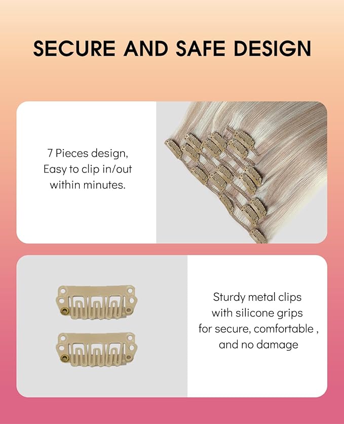 - Secure and Safe Design:Youngsmile 7Pcs/Set clip in hair extensions human hair(14-22inch:120g),Sturdy metal clips with silicone grips for secure attachment, comfortable wear, and no damage to natural hair, ideal for DIY styling. Easy to clip in/out within minutes