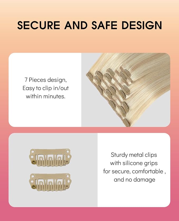 - Secure and Safe Design:Youngsmile 7Pcs/Set clip in hair extensions human hair(14-22inch:120g),Sturdy metal clips with silicone grips for secure attachment, comfortable wear, and no damage to natural hair, ideal for DIY styling. Easy to clip in/out within minutes