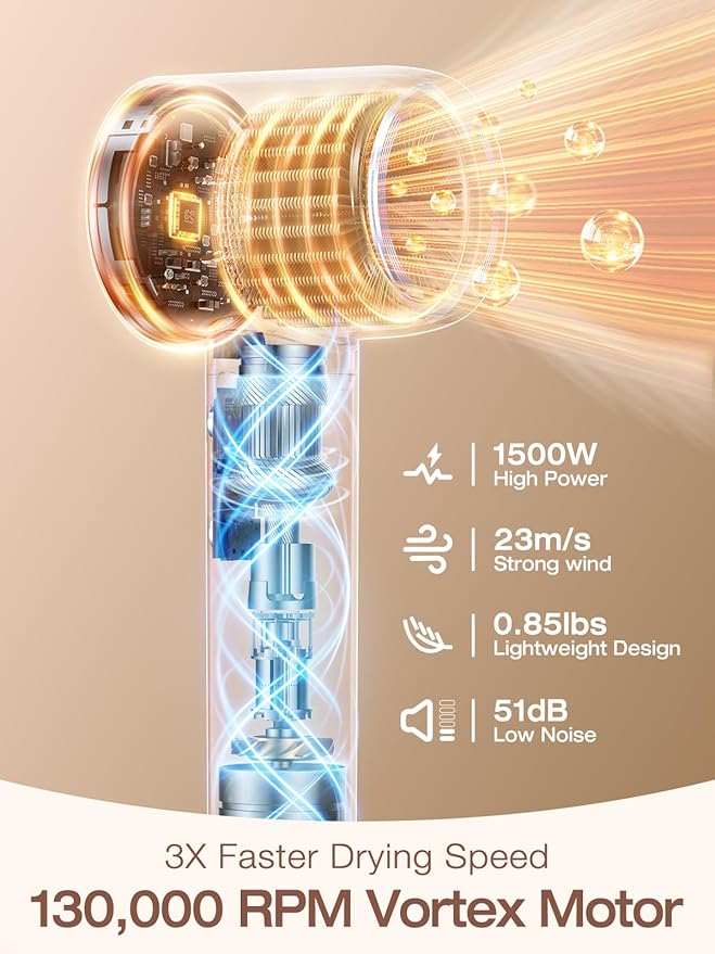 - Low Noise & Portable: This blow-dryer-with-diffuser uses 8-layer technology with German-engineered PI sound-absorbing composites and precision airflow buffers, operating at 51dB - quieter than normal conversation (60dB), so you won't disturb others when you use it. And it weighs only 0.85lbs/390g excluding the cord. Compact size and ingenious design, the hair dryers for women and others are a choice
