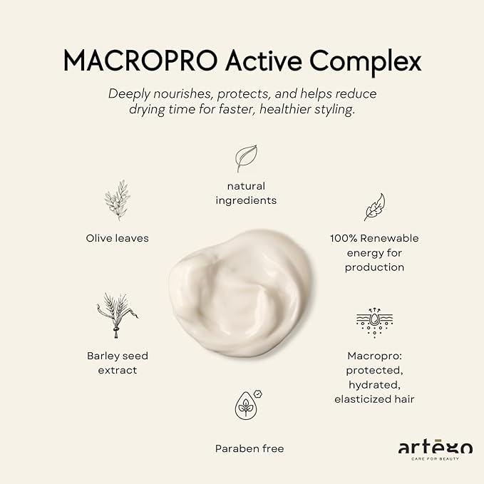 - MacroPro Active Complex – Deeply nourishes, protects, and helps reduce drying time for faster, healthier styling.