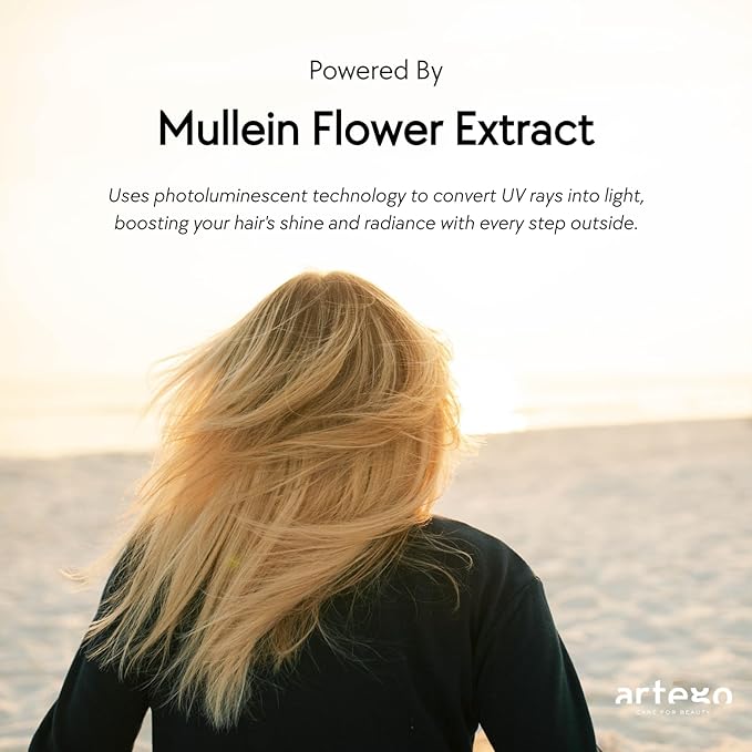 - Infused with Mullein Flower Extract – Uses photoluminescent technology to convert UV rays into light, enhancing shine and radiance.