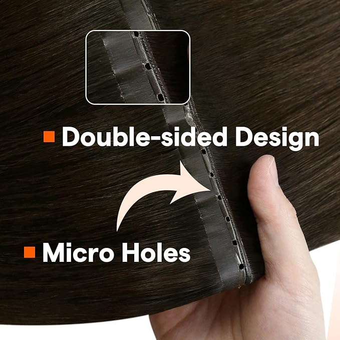 Full Shine Butterfly Weft Hair Extensions Human Hair 18 Inch Invisible Pu Hole Weft Extensions Color Dark Brown Straight Hand Tied Extensions For Women 100 Grams