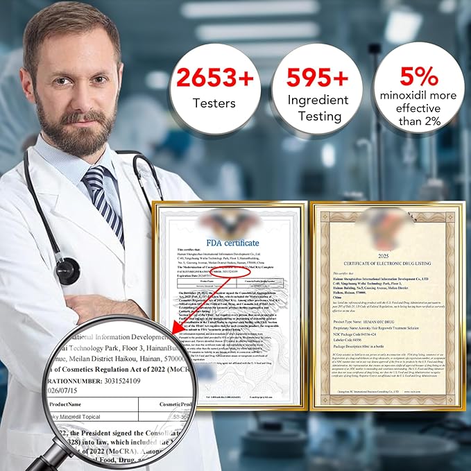 - 5% minoxidil: One of the globally recognized effective ingredients for treating hair loss, baldness, and thinning hair, with a maximum permitted concentration of 5%