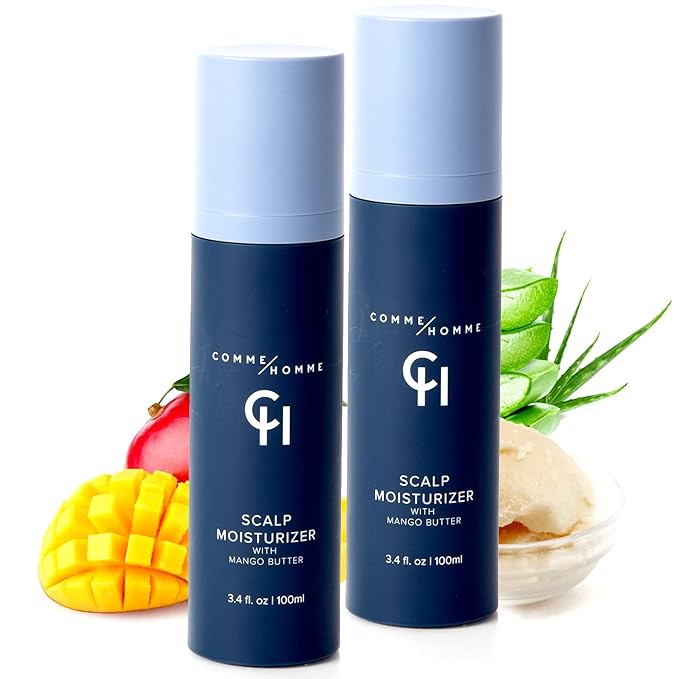 Comme Homme Scalp Moisturizer for Bald Men – Soothes & Hydrates Dry Skin, Slows Hair Regrowth – With Aloe Leaf Juice, Arrowroot Powder, Mango Butter & Capislow – Pack of 2 x 3.4 fl oz/ 100 ml