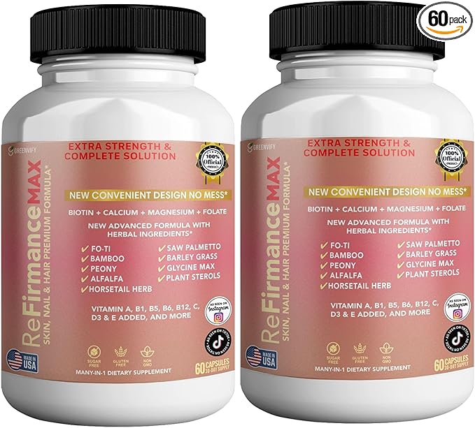 ReFirmanceMax Hair Growth Supplement, 60 Capsules, with Biotin 5000mcg, Vitamins B12, Calcium, Saw Palmetto, 30 Day Supply (2)