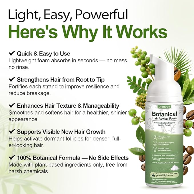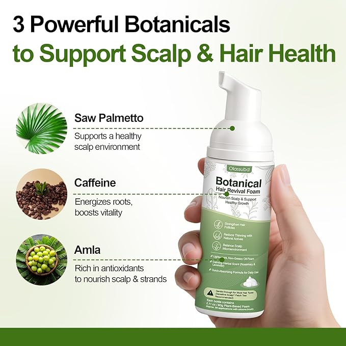 - Hair Thickener Foam | Rosemary & Lavender for Daily Botanical Balance.Powered by rosemary and lavender, this hair growth product blends nature’s most soothing botanicals into your daily routine. Lightweight and non-sticky, this hair supplement for growth absorbs quickly—no rinse needed. Perfect for all hair types, this hair oil foam nourishes the scalp and supports healthy growth. With consistent use hair regrowth foam, visible results can be seen in just 8–12 weeks—naturally and effortlessly.