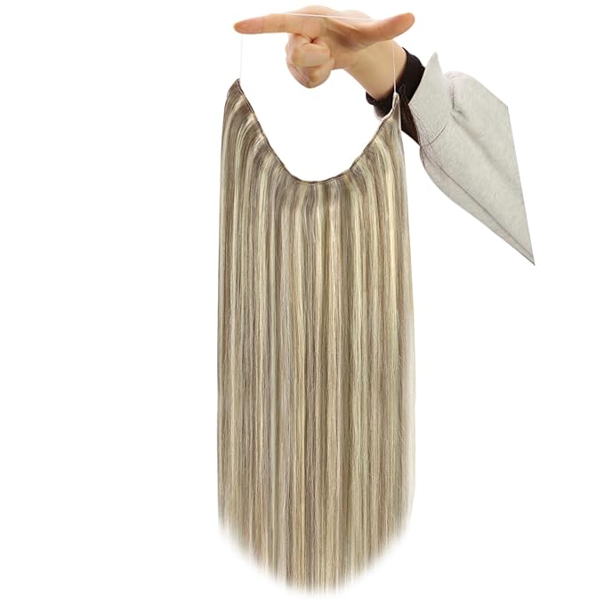 YoungSee Wire Hair Extensions Highlights Human Hair Wire Extensions Light Brown with Blonde Fish Line Hair Extensions for Woman 20inch 100g