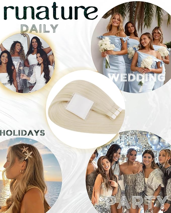 RUNATURE Tape in Hair Extensions Human Hiar Blonde Hair Extensions Tape Ins 28 Inch Long Tape in Extensions Human Hair Silky Remy Hair for Women 50g 20pcs #800 White Blonde