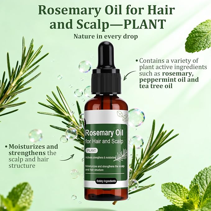 - 【Plant-Powered Activating Blend】The rosemary oil is infused with a potent blend of natural extracts, including Rosemary, Peppermint, and Tea Tree Oil. These plant active ingredients work in harmony to deeply moisturize the scalp, recover its health, and provide antioxidant protection for stronger, more resilient hair.